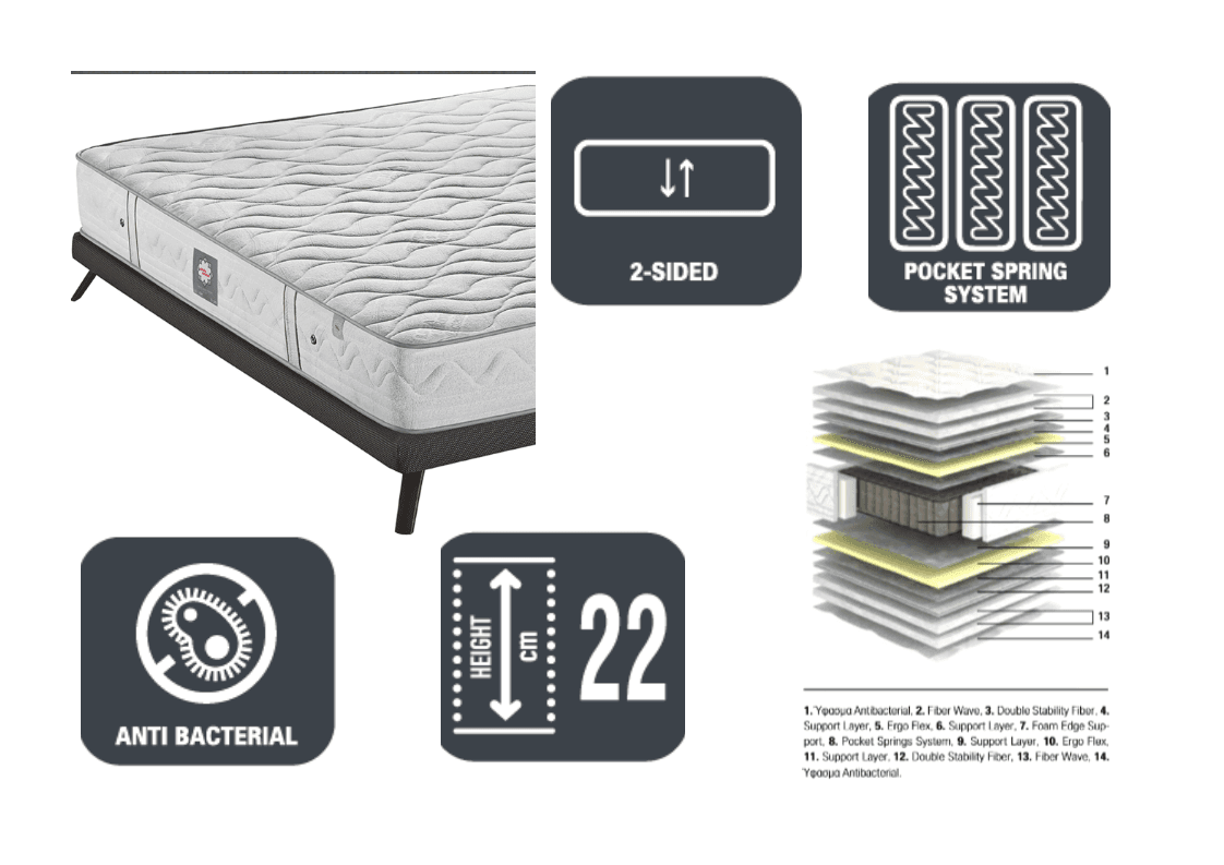 Ύψος στρώματος :  22 cm